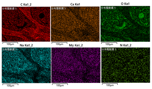電子束在任意圖形面積范圍內進行掃描,能獲得每種元素含量在這個圖形范圍內的變化情況。元素在試樣表面的分布能在屏幕上以不同的亮度顯示出來,亮度越亮,說明元素含量越高。