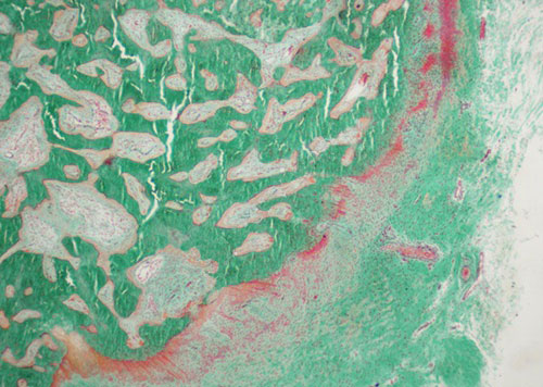 未脫鈣兔骨 Goldner染色