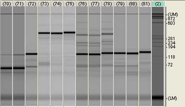 圖1. 用島津MultiNA芯片電泳儀進行引物篩選的結果