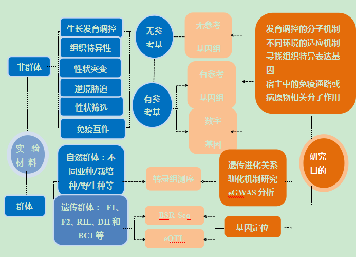 主要針對轉錄產物mRNA進行高通量測序,可快速獲得某一物種特定組織或器官在某一狀態下的基因表達量及結構變異等,可用于差異表達分析、挖掘功能基因、RNA編輯分析等。目前已廣泛應用于生物學研究、農業、醫學等多個領域,揭示生物生長發育調控機制、不同環境適應機制、作物優良形成機理、疾病發生發展的分子機理等。